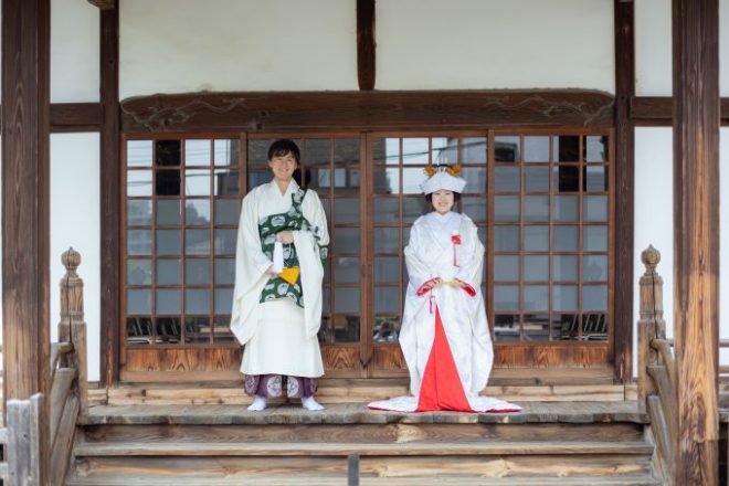 神社で神前式やお寺で仏前式、教会で結婚式の新郎新婦さんに、