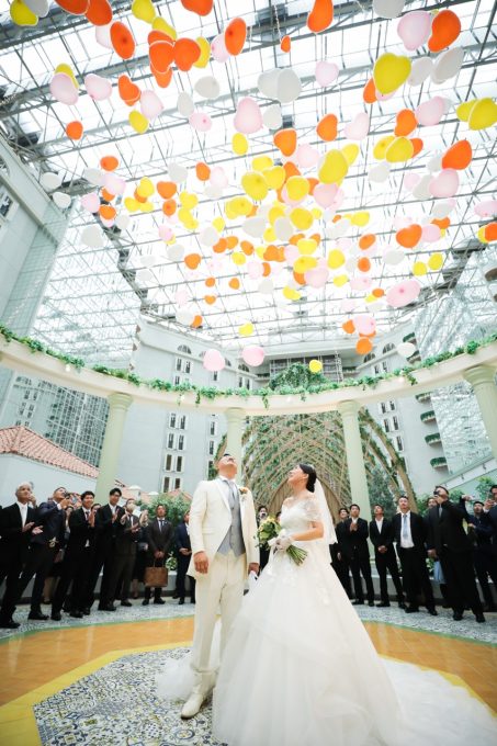 皆の前に降り注ぐバルーンはゲストとも一体感が出ます。