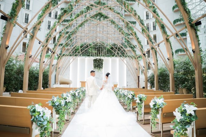 挙式の会場も自然光が入り、吹き抜けになっているので天井が高く本当におすすめなのです。