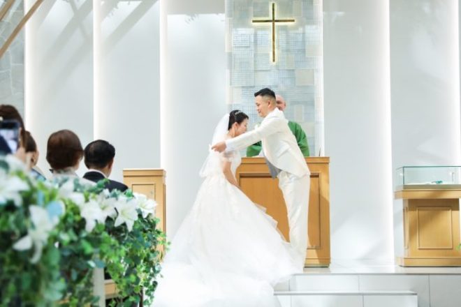 神社で神前式やお寺で仏前式、教会で結婚式の新郎新婦さんに、