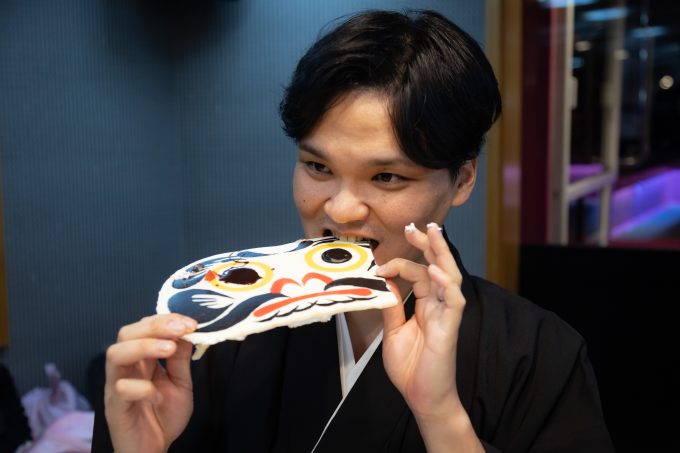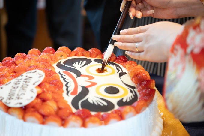 ケーキ入刀ではなく、ダルマの目入れをしました。
